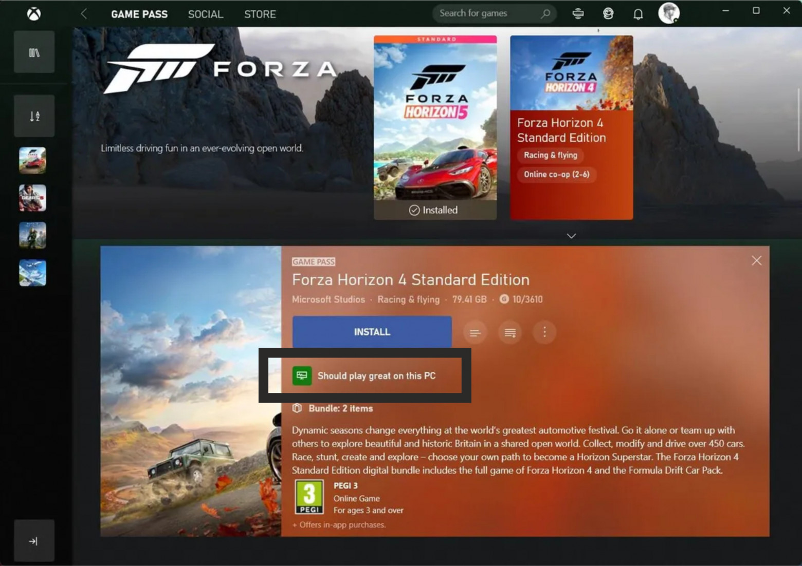 Требования к установке указаны в описании к каждой игре. Тем не менее, отметка непосредственно внутри приложения Xbox могла бы значительно облегчить пользователям проверку сопоставимости игр с их с ПК. Кроме простого сравнения списка системных требований владельцы компьютеров могут использовать специальные сторонние инструменты, например, сервис Can You Run It, что также не очень удобно в сравнении с встроенными сервисами.
