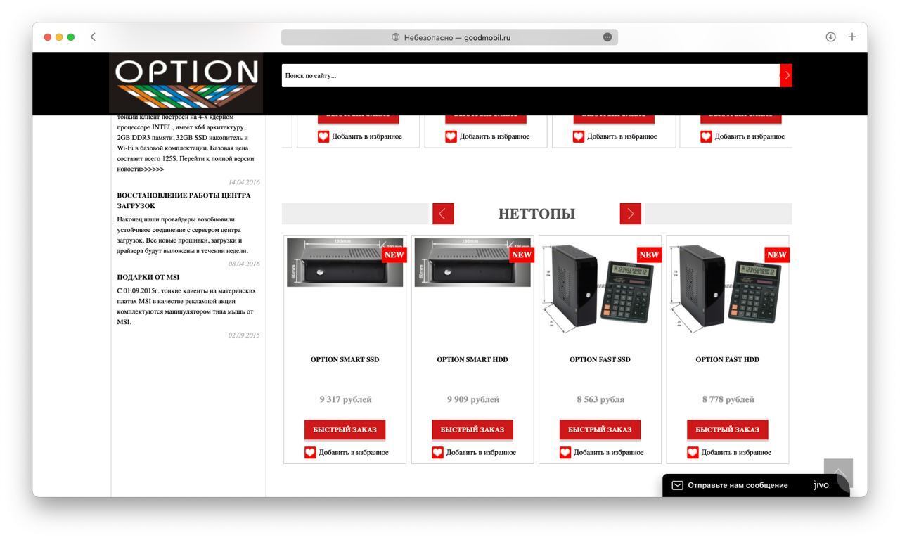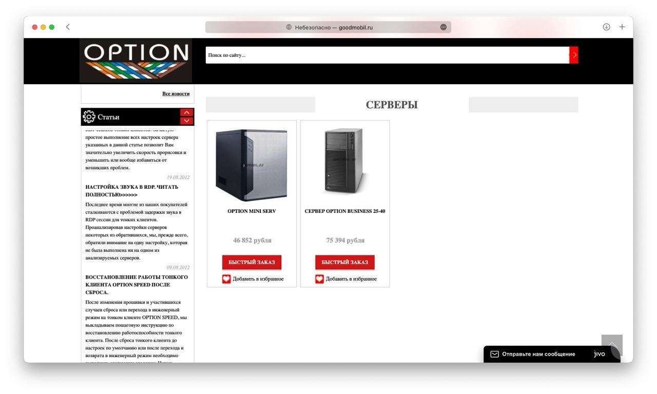 На сайте «Оптиона» можно увидеть только серверные решения, «тонкие клиенты» и портативные ПК (неттопы):