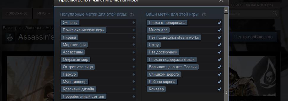 Посетите страницу своей любимой игры или ПО в магазине Steam и добавьте метки, которые считаете подходящими для данного продукта. Метки, добавляемые чаще всего, станут избранными и позволят всем находить продукты из набора жанров, тематик и свойств, определяемых как вами, так и сообществом.