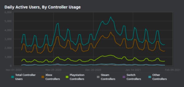 В компании также рассказали, какими именно манипуляторами геймеры пользуются чаще всего. Контроллер Xbox оказался на первом месте по популярности. Его использовали в 68% игровых сеансов. За ним последовал контроллер PlayStation (21%). Геймпад Switch Pro оказался на третьем месте (4%). Наименее востребованным стал контроллер Steam (2%).