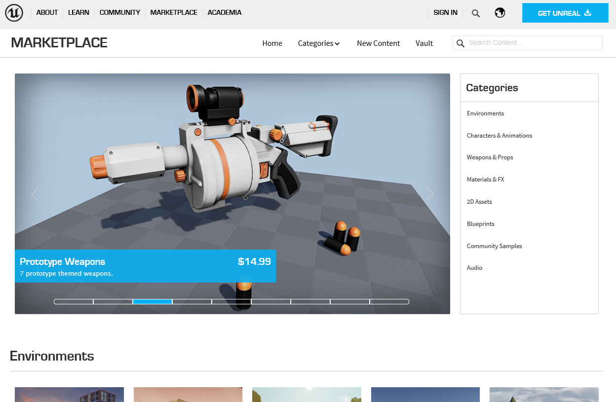 Как вы знаете, Marketplace в Лаунчере достаточно быстро пополняется различными наборами для разработки своих игр на движке Unreal Engine 4. Теперь, когда появилась Веб версия магазина, покупки стали ещё удобнее. Сам Marketplace вы можете найти тут. В нем все разбито по категориям, а так же добавлен поиск, благодаря которому можно быстро найти тот или иной набор. Так же появилась возможность оценивать наборы по 5 бальной системе, что не может не радовать. Более того, в веб-версии доступны комментарии. Вы можете прокомментировать свою покупку что бы люди лучше знали, стоит ли она того, или же нет.