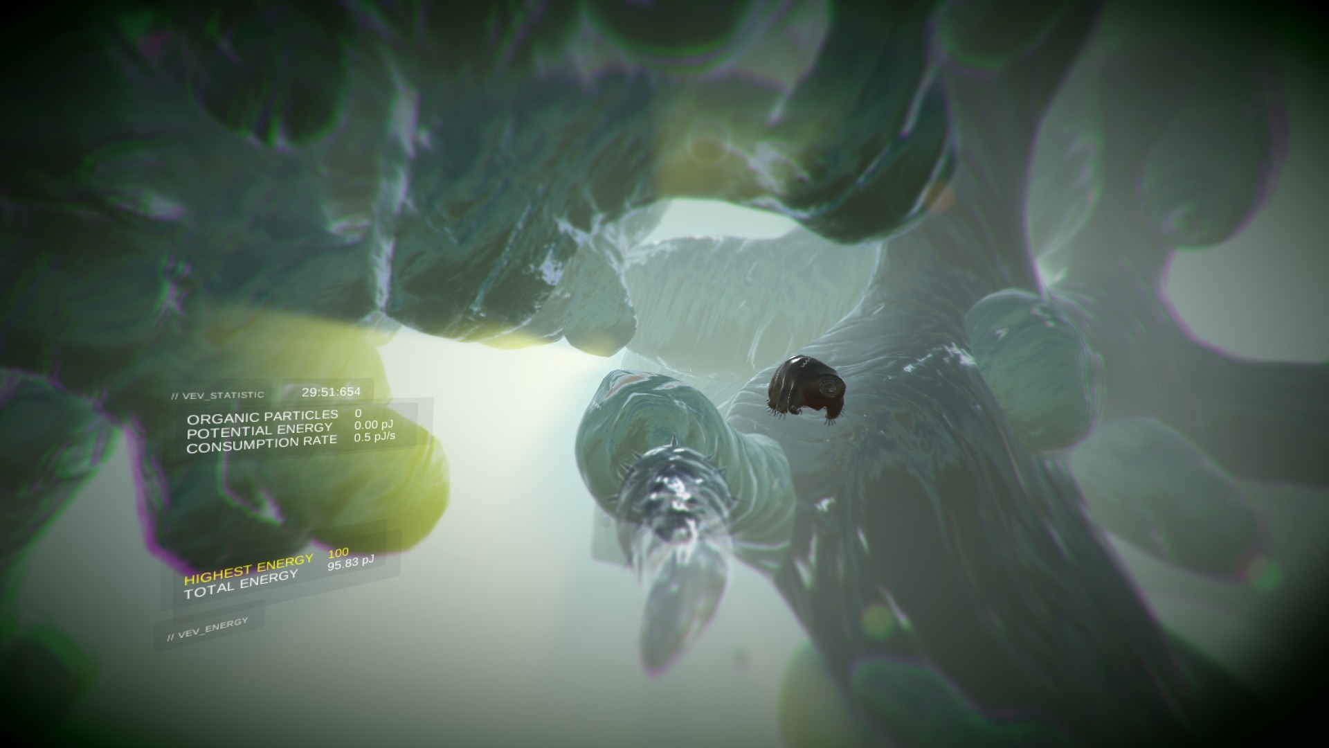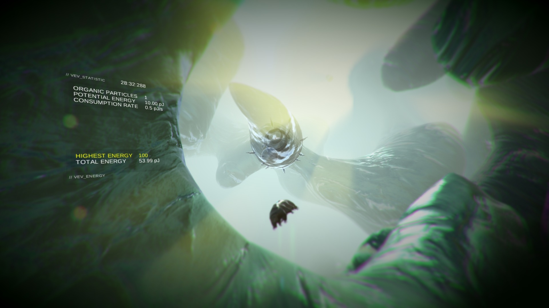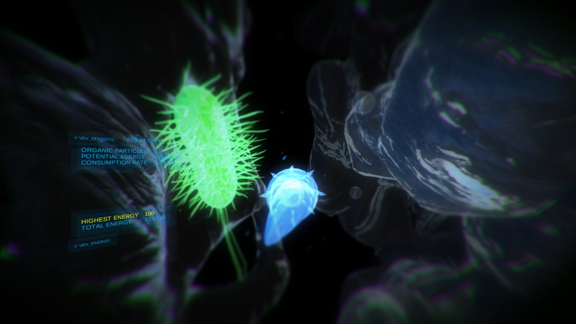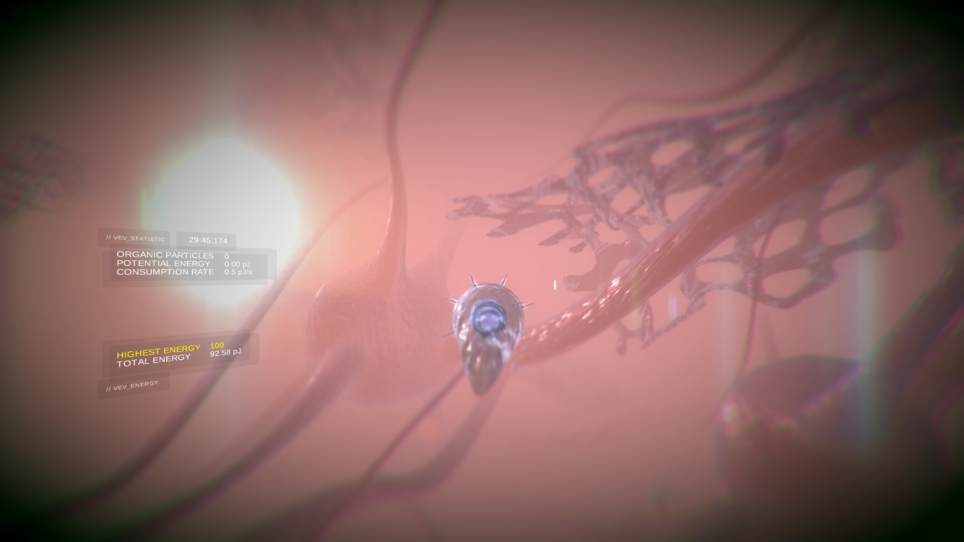 Зовут нашего нано-героя VEV, что является аббревиатурой от «Virtual Eukaryote Visualizer», то есть «Виртуальный Эукариот-визуализатор». Он функционирует аналогично большинству дистанционно управляемых дронов, известных современному человеку. Каждая капля воды или крови становится для VEV огромным пространством для исследования. Нам нужно будет собирать органические частички и необходимую для продолжительного функционирования нанодрона энергию. В противном случае, мы потеряем его и придётся всё начинать заново.