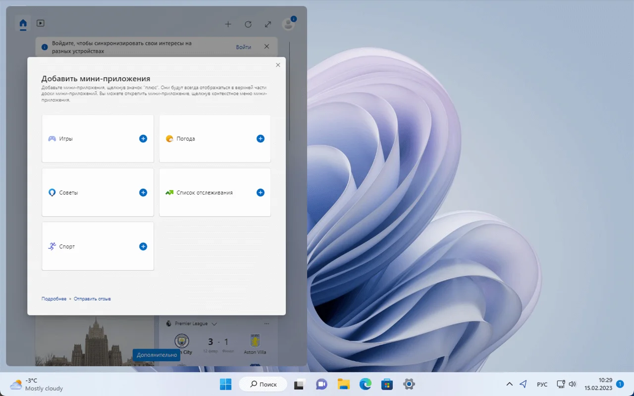 Теперь оба этих первоначальных ограничения уходят в прошлое. Уже доступны первые сторонние виджеты, по крайней мере, в сборках операционной системы Windows 11 для разработчиков. А в стабильных версиях Windows 11 виджеты больше не требуют, чтобы пользователи использовали учетную запись Microsoft. На скриншоте ниже показан интерфейс виджетов с локальной учетной записью в Windows 11. В самом верху предлагается войти в учетную запись, чтобы синхронизировать свои интересы на разных устройствах.