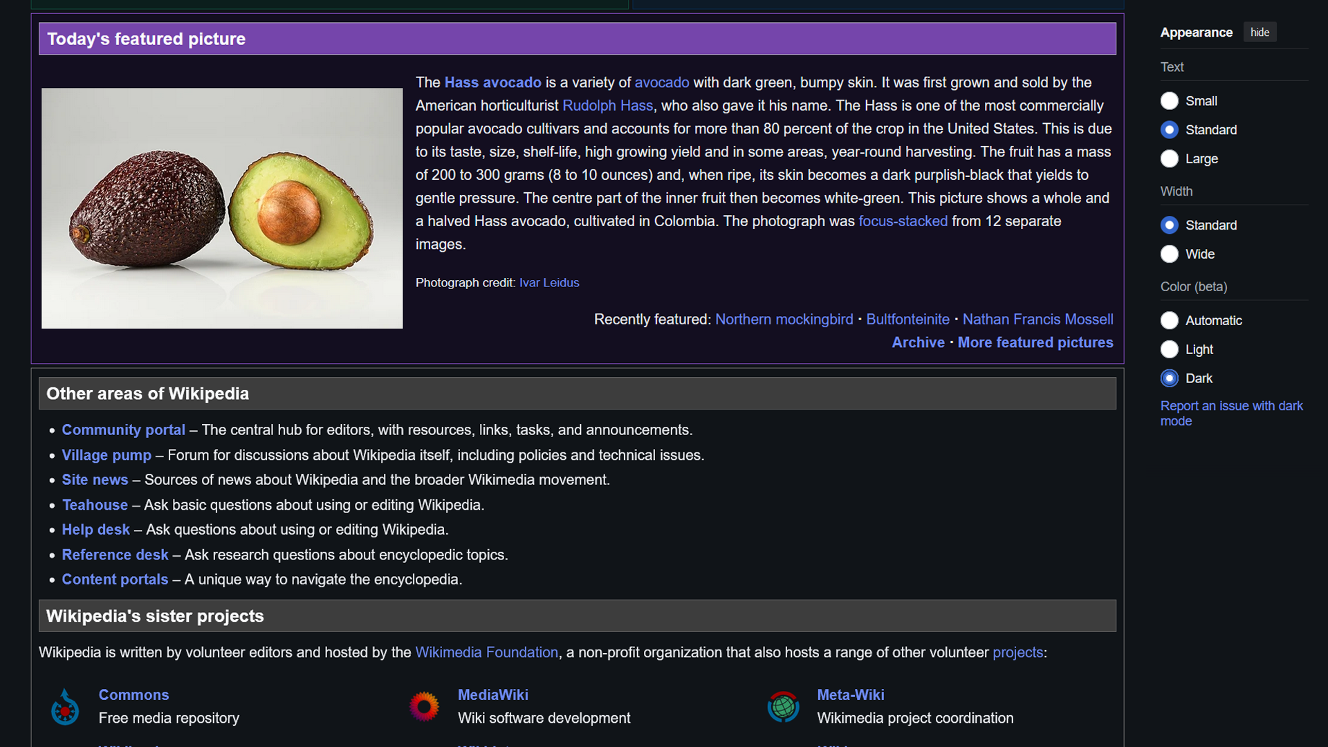 Тем не менее, под давлением сообщества разработчики энциклопедии всё-таки решились на перемены. Теперь пользователи могут наслаждаться комфортным чтением статей как в настольной, так и в мобильной версии сайта благодаря новой опции «Тёмный» в настройках цвета.