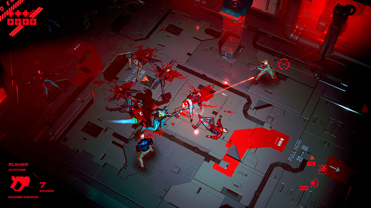 Ruiner — top-down шутер в уже классическом киберпанковом сеттинге. События разворачиваются в 2091 году в городе Ренгкоке. Главный герой противостоит мегакорпорации и пытается отыскать похищенного брата.