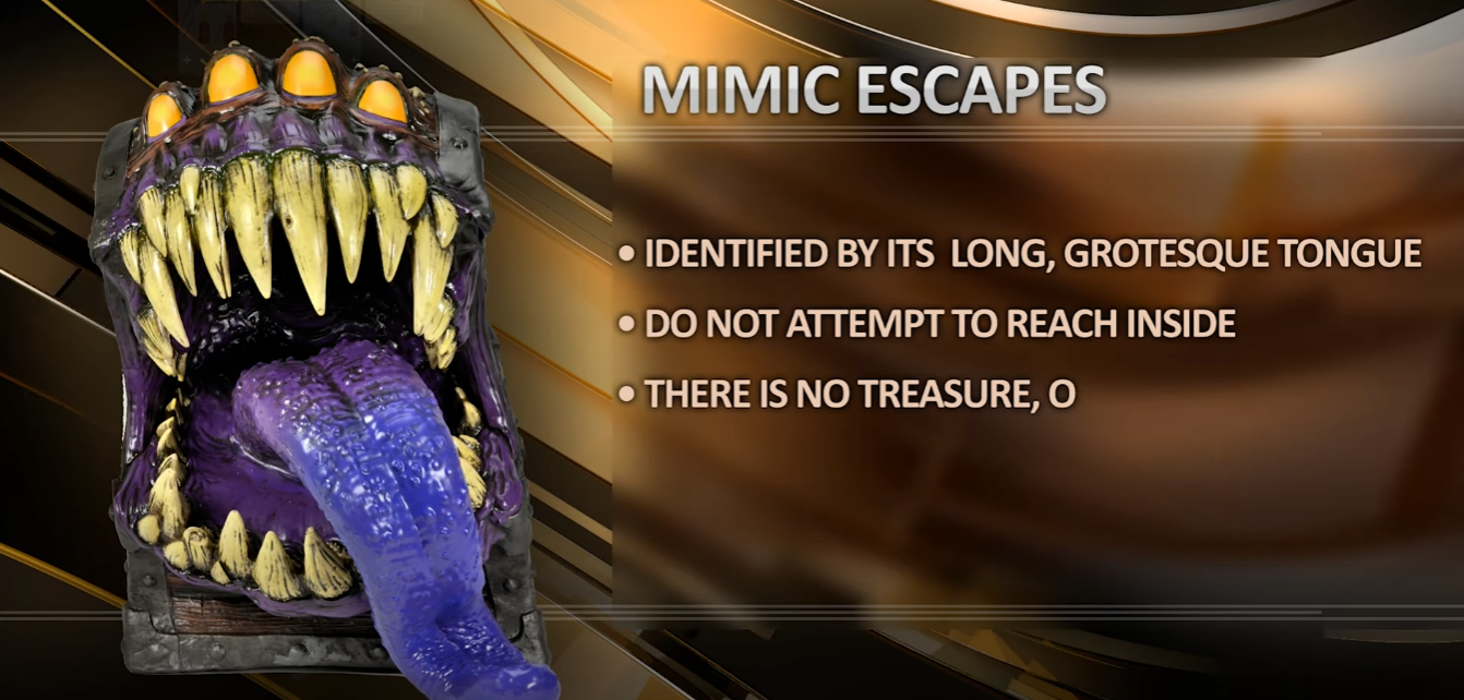 Компания WizKids, производитель настольных миниатюр для использования в кампаниях D&D, продемонстрировала новые миниатюры больших размеров: устрашающего вида Мимика и гораздо менее угрожающего Совомедведя. Согласно шуточному видео, Мимик будет 50 см в высоту и 38 см в ширину, а Совомедведь - 27 см в высоту и 30 см в ширину, что, если воспринимать их буквально, сделает их непрактичными для использования в реальных играх. В любом случае, обе минифигурки уже доступны для предзаказа.