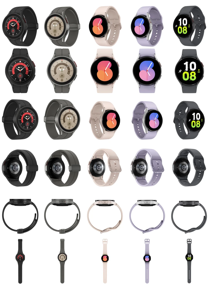 В сети появился рендер, на котором изображены все версии смарт-часов Samsung Galaxy Watch 5 Pro и Galaxy Watch 5, официальный релиз которых ожидается 10 августа. Galaxy Watch 5 получат версии на 40 и 44 мм, а Galaxy Watch 5 Pro только один размер на 45 мм. Последние, судя рендеру, окажутся толще из-за более ёмкого аккумулятора.