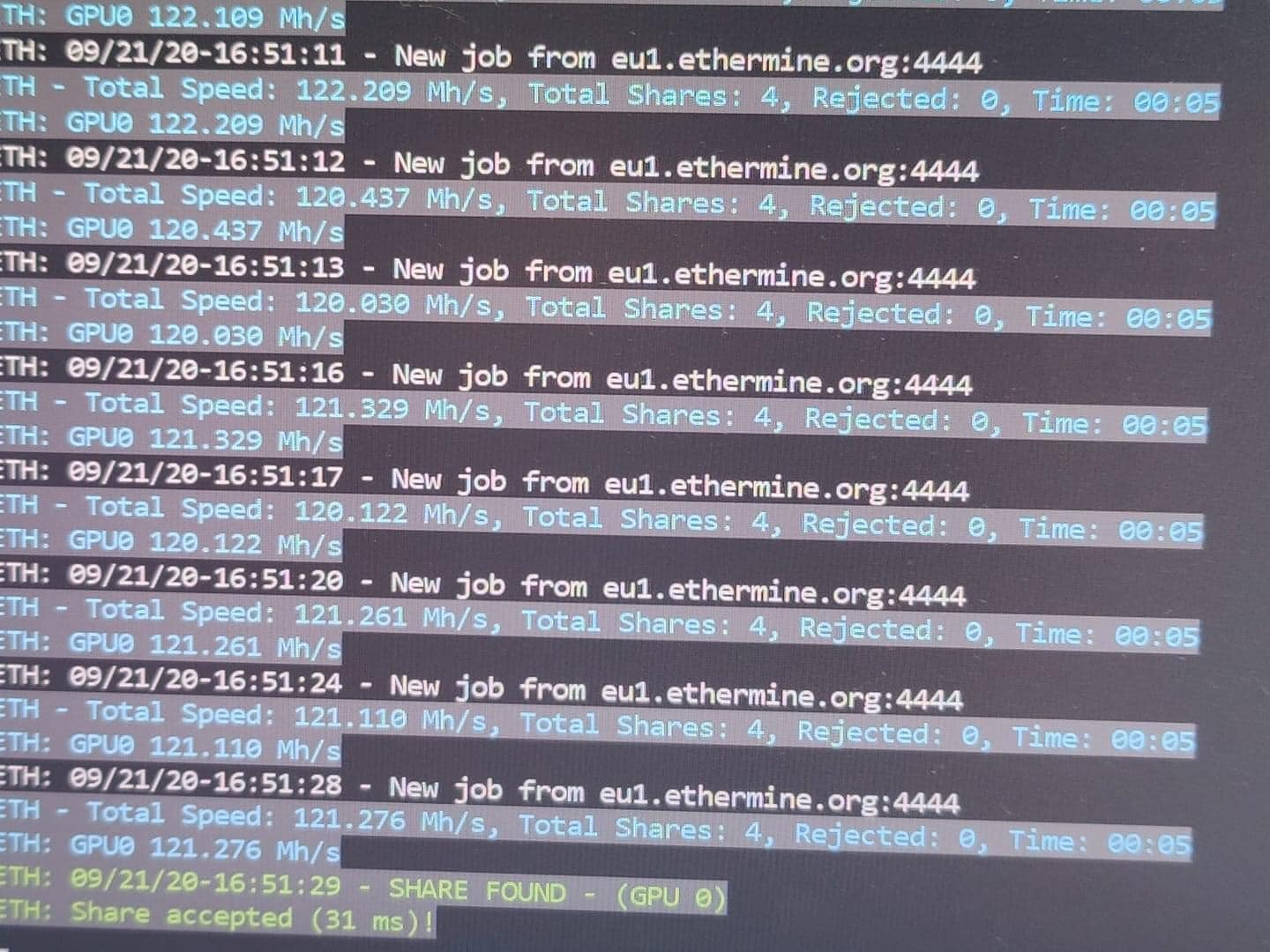 Если до этого очень быстрой в майнинге была GeForce RTX 3080, то старшая модель улучшила показатели младшей еще на 50%! Так, если производительность GeForce RTX 3080 — 81-89 Mh/s, то GeForce RTX 3090 демонстрирует производительность на уровне 120-122 MH/s! И хотя конкретные условия теста не сообщаются (с разгоном или без, какой уровень мощности и какие алгоритмы добычи криптовалюты задействованы), тем не менее, результат впечатляет.