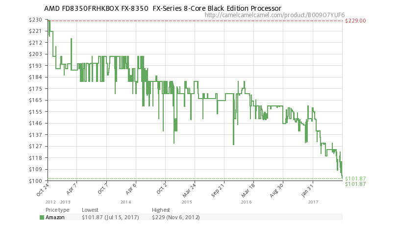 Несмотря на недостатки, описанные в соответствующем обзоре, процессор получился настолько удачным, что спрос на него есть до сих пор. Есть повод обрадовать тех, кто не хочет ограничиваться четырьмя ядрами Intel — стоимость процессоров AMD FX-8350 Black Edition на днях снизилась до отметки $100 и одно время находилась даже ниже этой отметки. На вторичном рынке эти чипы и вовсе предлагаются по $90 и менее. Они не очень подходят для игр, но всё же обеспечивают достаточно высокий уровень производительности в них, а в таких задачах, как кодирование видео и 3D-рендеринг, и вовсе чувствуют себя великолепно. С учётом такого падения стоимости это отличное бюджетное предложение для любого, кому нужен недорогой персональный компьютер не только для игр.