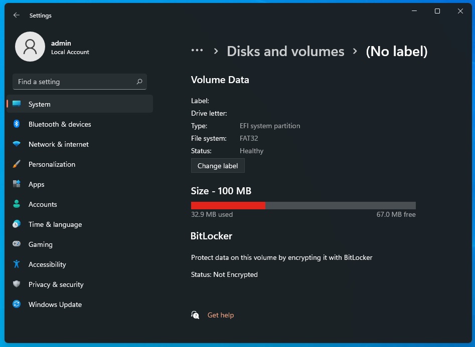 Для расширенного использования есть новая функция под названием «Управление дисками и томами». Как следует из названия, этот «современный интерфейс» основан на устаревшем инструменте Управления дисками и был переработан с учетом специальных возможностей.