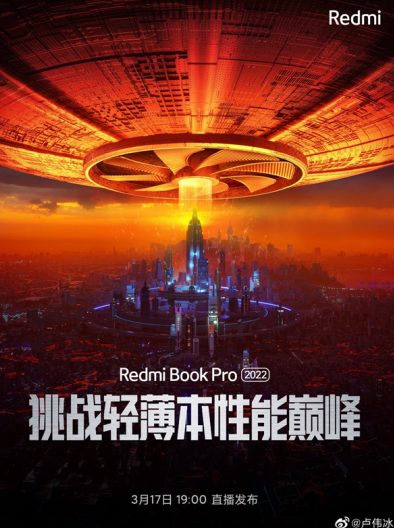 Помимо раскрытия некоторых аспектов серии Redmi K50, Xiaomi объявила о презентации ноутбука Redmi Book Pro 2022 17-го марта.