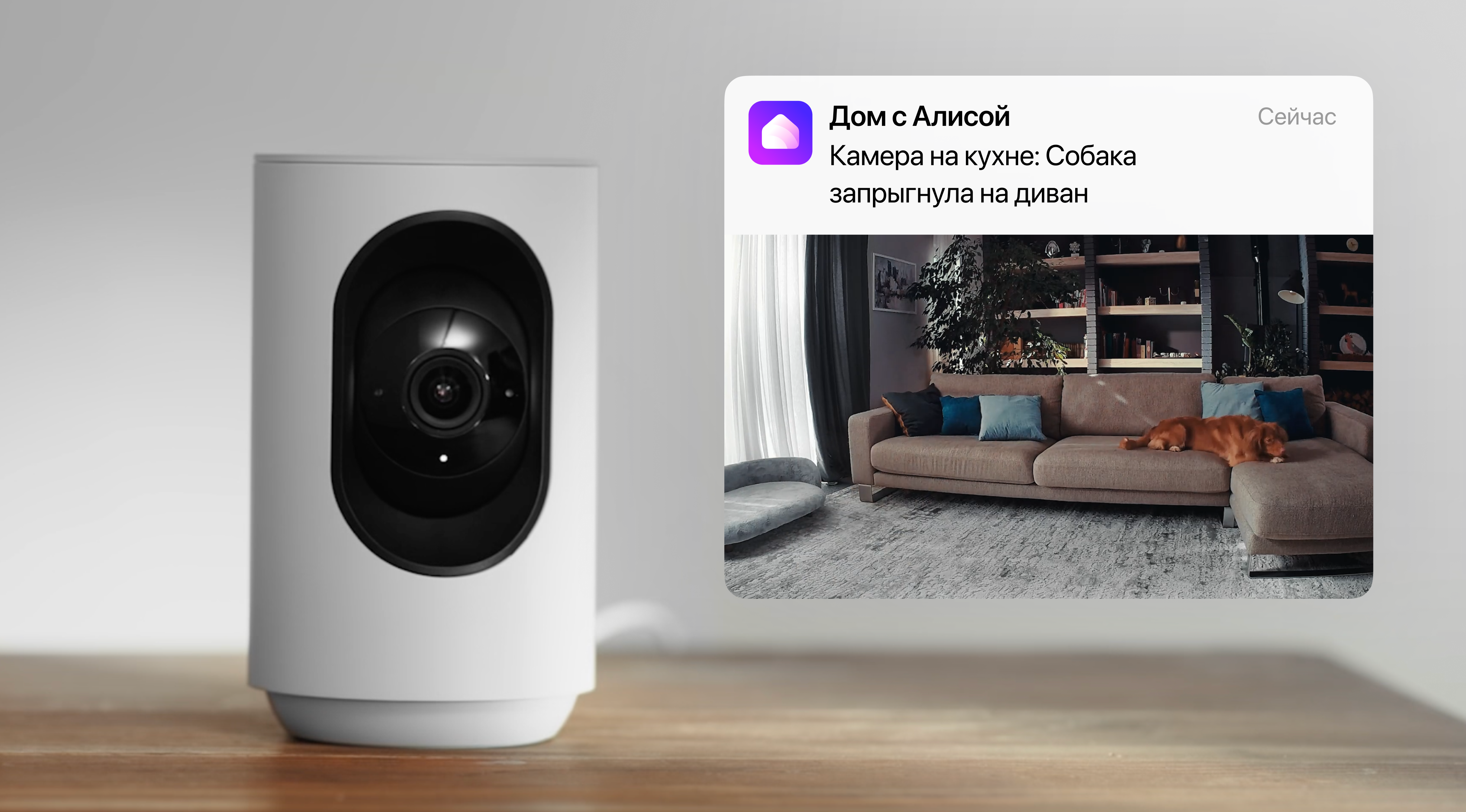 Яндекс представил обновлённые возможности умной IP-камеры с поддержкой искусственного интеллекта. Встроенная нейросеть анализирует видеопоток и отправляет пользователю детализированные уведомления о конкретных событиях — например, сообщает о появлении питомца или возвращении детей домой, а не просто фиксирует движение в кадре.