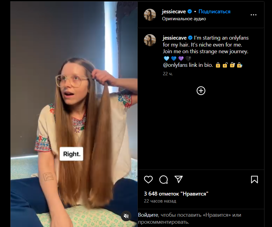 По словам Кейв, на платформе она будет продавать подписчикам видео своих волос, их звуки и другой «чувственный» контент. При этом Кейв откажется от публикаций, связанных с сексом.