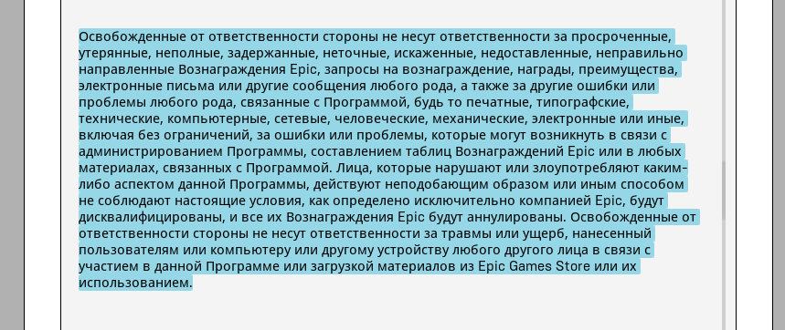 Вишенкой на торте оказывается пункт, который прямым текстом говорит, что, за любой вред конечному пользователю, за проданный продукт, компания EPIC не будет нести ответственности.