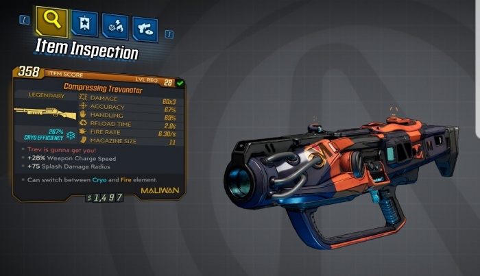 Как только вы получите в свои руки больше оружия, вы начнете замечать различные элементные свойства, прикрепленные к ним: Shock(Шок), Corrosive(Корозия), Radiation(Радиация), Incendiary(Зажигание) и Cryo(Обморожение). Каждый из них эффективен в своих отношениях и может даже помочь вам лучше уничтожить врагов определенного типа. Ниже вы можете найти краткое описание различных элементных свойств: