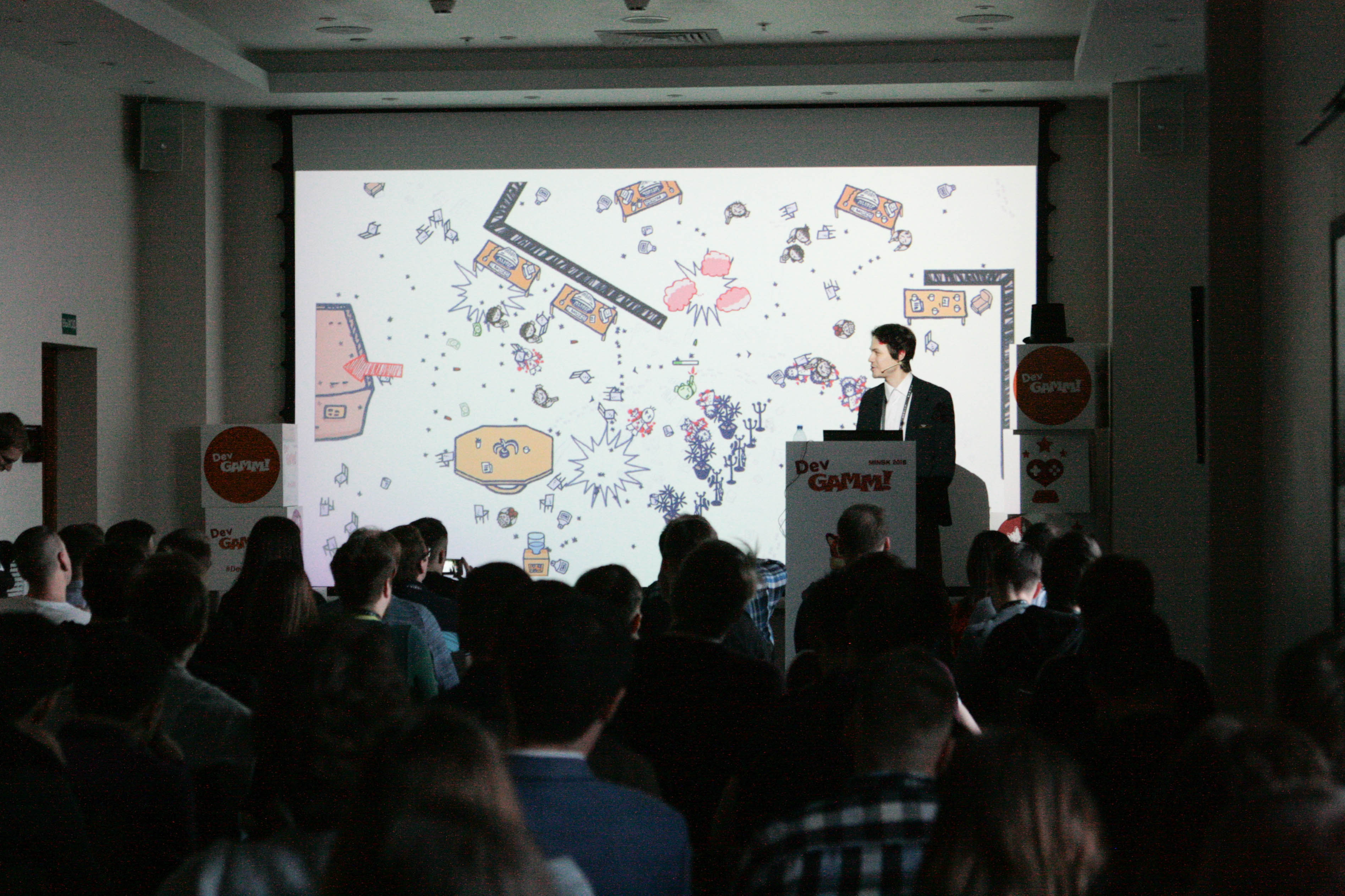 Традиционно на DevGAMM было огромное количество докладов на самые разные темы, начиная с особенностей создания открытого мира в мобильных играх и заканчивая продюсированием «социалочек». Все лекции являются узкоспециализированными и не рассчитаны на массовую аудиторию. Скажем, если вы 2D-художник, и у вас в расписании появилась «форточка», то посещать доклад по машинному обучению вам, скорее всего, не стоит. Вы, конечно, можете прийти и послушать про то, как создавался обновленный саундтрек World of Tanks, однако за такой кажущейся простой темой скрывается вполне серьезный технический спич.