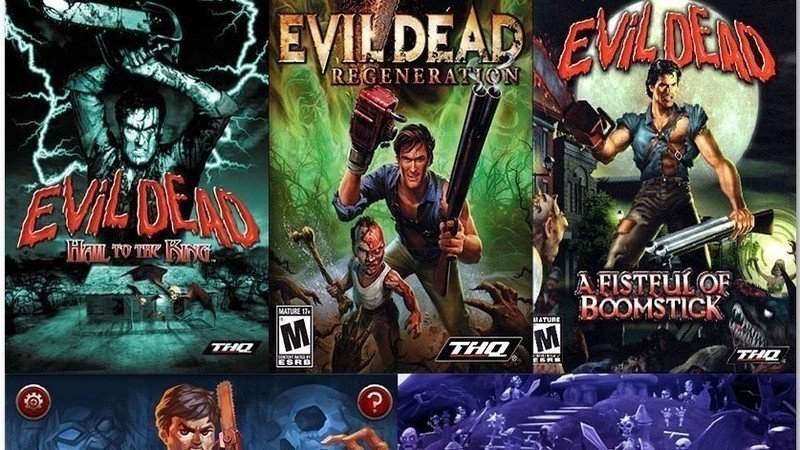 Фильм «Зловещие Мертвецы» Сэма Рейми и его последующие сиквелы являются классикой, и стали источником вдохновения для многих творцов. Не удивительно, что по этому фильму выпустили сразу трилогию игр. Первая часть Evil Dead: Hail to the King рассказывала, как после событий в третьем фильме Эш возвращается в прошлое, в Дамаск, чтобы встретиться с создателем Некрономикона. Главным антагонистом стал Злой Эш. Обеих озвучивал Брюс Кэмпбелл, игравший Эша в оригинальных фильмах. Игра пыталась парадировать стиль первой Resident Evil, но это не пошло ей на руку, за что она и получила критику.