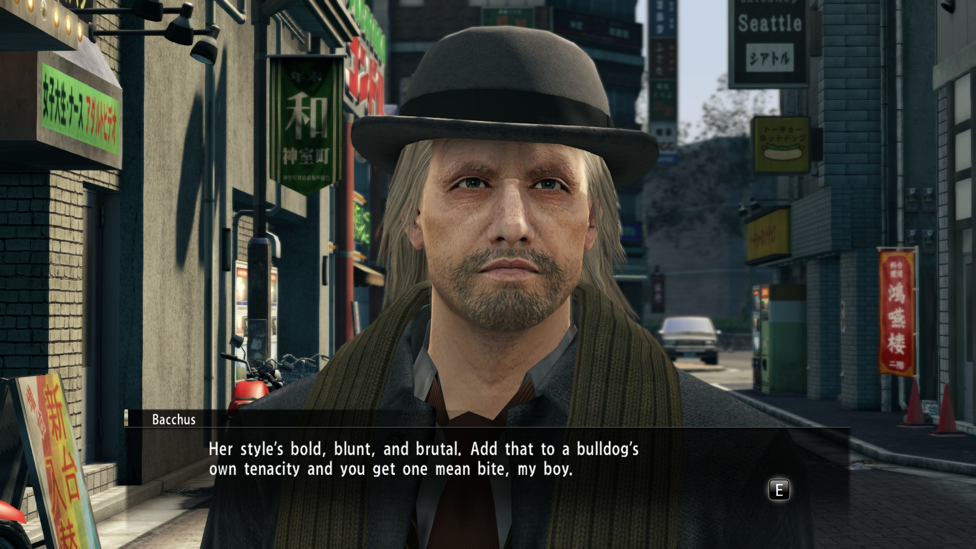 1) Язык — практически все иностранные персонажи в Yakuza мучаются и страдают от японского языка, в особенности проблемы возникают с произношением. Каким-то персонажам это придает простой маркер «иностранец», другие же становятся жертвой обстоятельств из-за своего уровня владения языком. Альтернативный вариант развития событий — это когда самим японцам необходимо освоить зарубежный язык, который автоматически делает их «крутыми» в глазах ближайшего окружения.