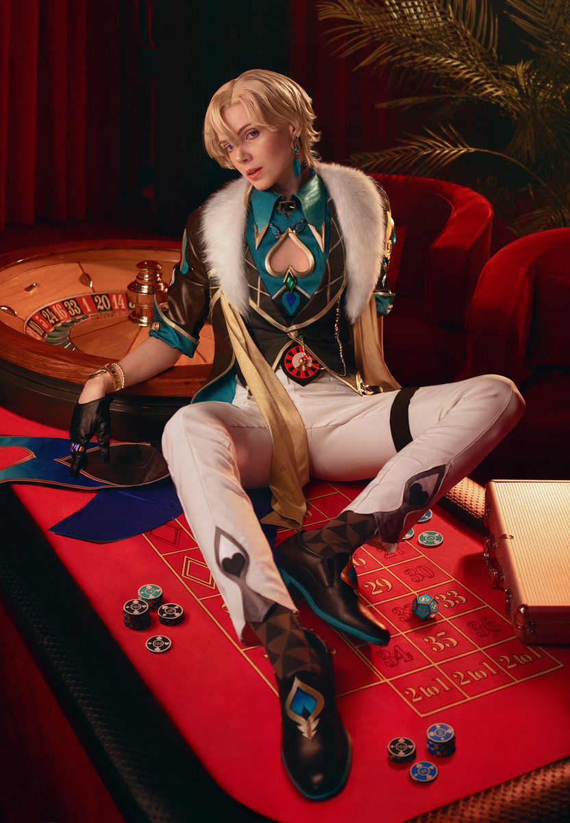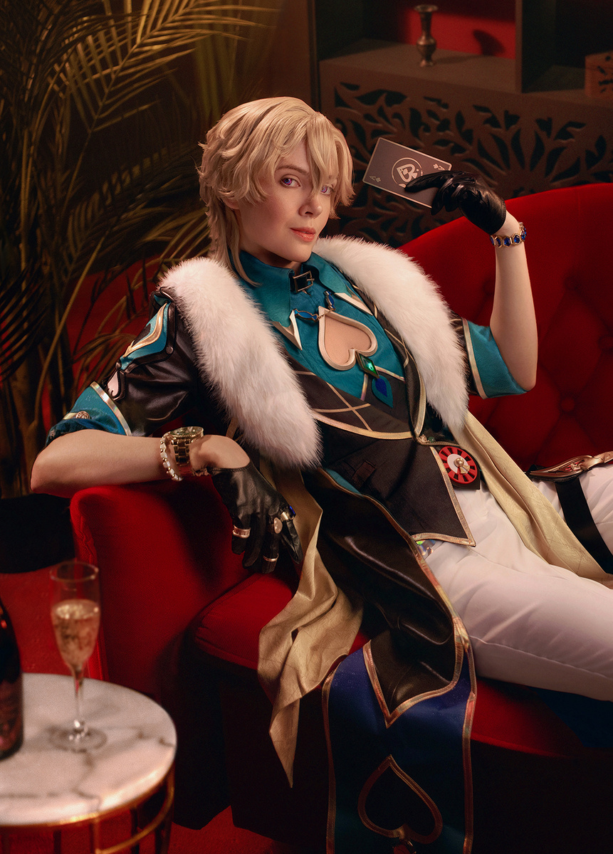 По уровню проработки отмечу Тарталью. Мы с ним вот уже 3 года неразлучны, за плечами 13 фотосетов и впереди ещё больше. У меня на него 4 парика, 4 полноценных костюма и несколько ориджиналов, и всё это время я совершенствуюсь. По отыгрышу больше всего горжусь Сергеем Разумовским, этот персонаж открыл для меня новые грани в плане эмоций на камеру. Также Мелло - глядя на меня в жизни и не скажешь, что мне подошёл бы этот персонаж, но в костюме я выгляжу совершенно иначе, это очень круто.