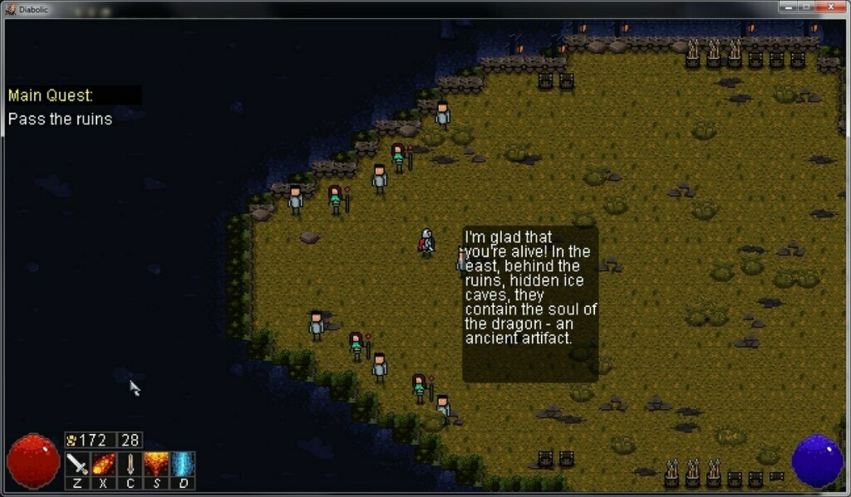 Diabolic представляет собой пиксельный RPG слешер, события которого происходят в мрачном фэнтезийном мире. Игроку будет доступен всего один персонаж и в зависимости от того как игрок будет его прокачивать, этот персонаж будет становиться воином, магом или лучником ну или же комбинацией всего этого, но об этом чуть позже.