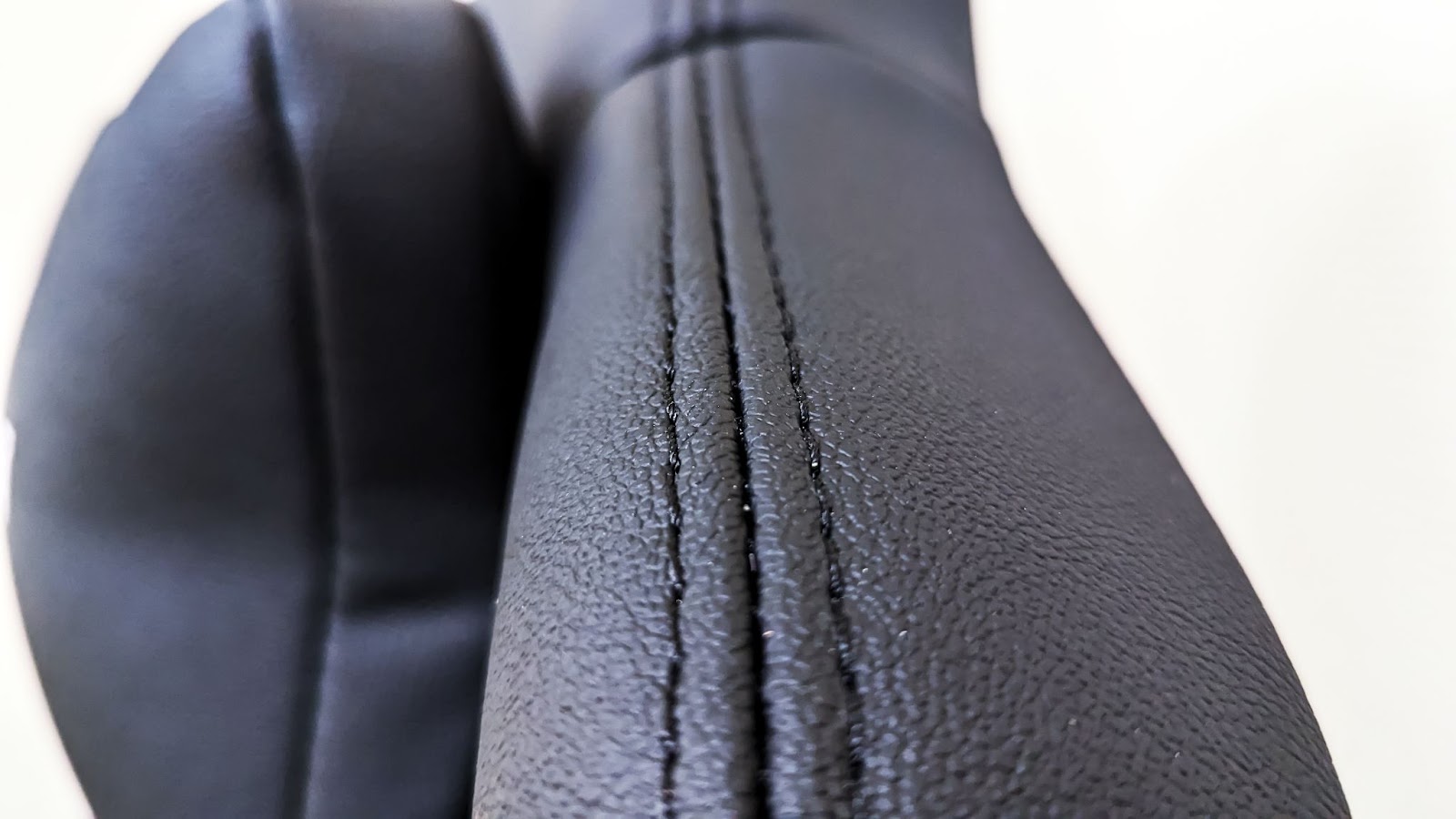 Материалом обивки служит ПВХ-кожа DuraXtra. Она очень приятна на ощупь и сильно напоминает натуральную кожу мягкой выделки. При этом материал лишен ряда недостатков кожаных кресел. В одежде вы не будете выскальзывать из кресла. Также стоит отметить отсутствие нагрева поверхности в районе спины (и чуть ниже). И это при том, что батареии у автора шпарят так, как будто на улице не около нуля, а все -30.