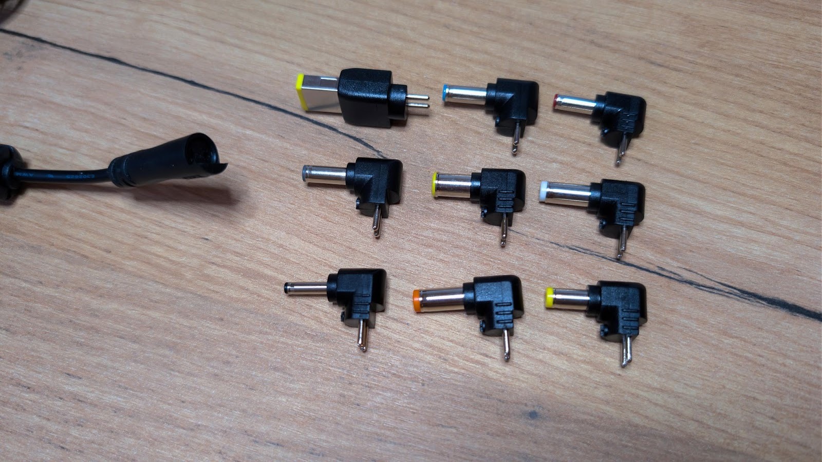 Переход к 90 ваттам — это уже другой уровень возможностей. FSP NB PRO 90W рассчитан на ноутбуки и мини-ПК, для которых 65 ватт — минимум, а стабильная работа под нагрузкой важнее всего. Здесь уже чувствуется, что адаптер создавался не просто как «зарядка», а как полноценный рабочий инструмент. Набор из девяти сменных коннекторов охватывает широкий спект производителей и моделей, притом не только современных (Toshiba SATELLITE середины нулевых “завелся” без проблем).