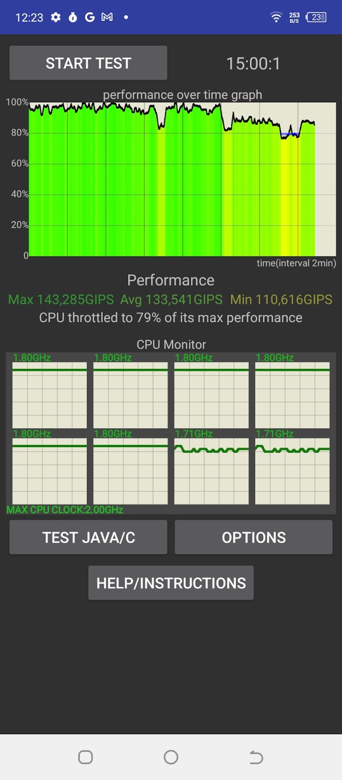 Тесты на тротлинг POVA 3 проходит уверенно, хотя заметны редкие просадки. После тестирования отчетливо ощущался нагрев по центру смартфона.
