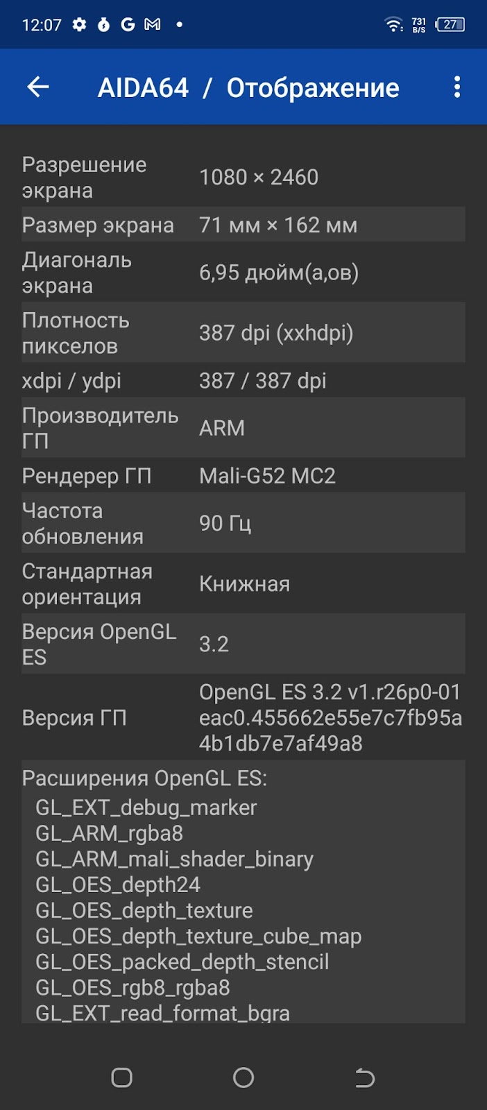 Дисплей выполнены по технологии IPS, обладает разрешением 1080×2460 точке (20,5:9) и частотой обновления 90Гц. Рамки достаточно скромные (от 4 до 7мм), имеется поддержка 5 одновременных касаний. Яркость и контраст у экрана на хорошем уровне, но точность цветопередачи немного хромает. Насыщенность и контраст немного завышены, что, в целом, не сильно влияет на общее впечатление. Искажения цветов при острых углах обзора замечено не было. Стоит отдельно упомянуть очень качественное антибликовые покрытие, что в купе с высокой яркостью (490 кд/м2) оставляет экран читаемым в любых условиях освещения.