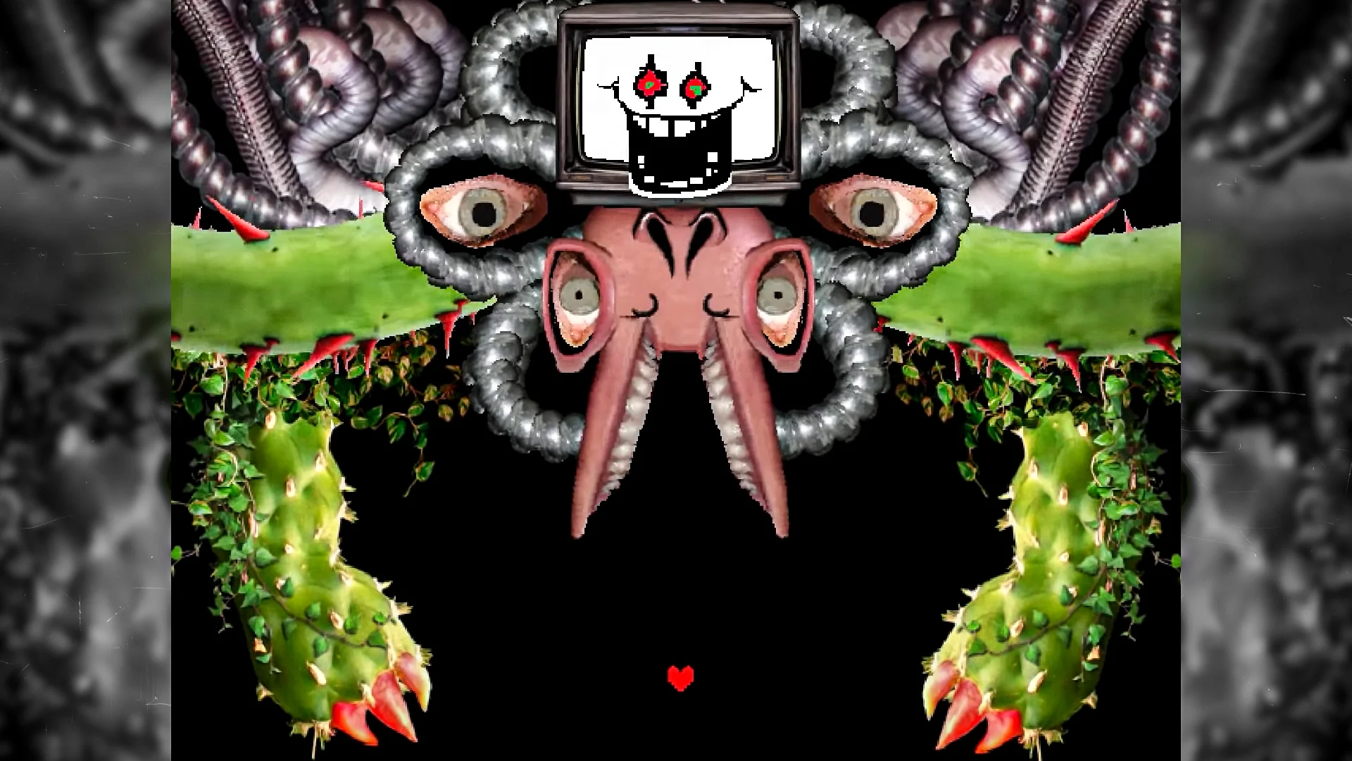 Это Гибрид органики, биомеханики, человеческих органов и механизмов. У него появятся жуткие челюсти, 4 громадных глаза, куча труб похожих на кишки и пара гигантских стеблей. Ну а в центре всей этой какофонии будет телевизор, на котором будет изображено обезумевшее лицо флауи, меняющееся на жуткое изображение кричащего человека. В битве Фотошоп Флауи невероятно силен. Он вонзает в вас кучу стеблей, стреляет из огнеметов, сбрасывает в вас кучу бомб и так далее. Плюс ко всему у него есть доступ к файлам игры. После вашей смерти он может начать насмехаться над вами и выключить игру, он обманывает вас фейковыми экранами смерти и частенько перезагружает бой, в момент, когда у полное здоровье. Ну нахер таких боссов!