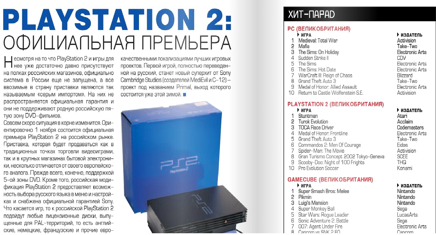 Автор хорошая попытка но в журнале 2002 года октябрь не те иры что в видео ))) У меня есть этот журнал ! Mafia и TotalWar были в ТОПе продаж в 2002 году.PS2 игры в 2002 году официально не продавались, а серая продукция ее вообще тупо считать !