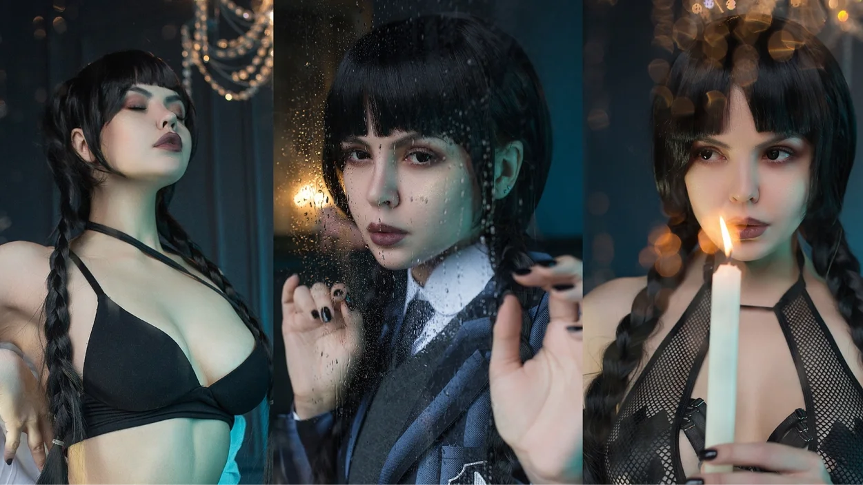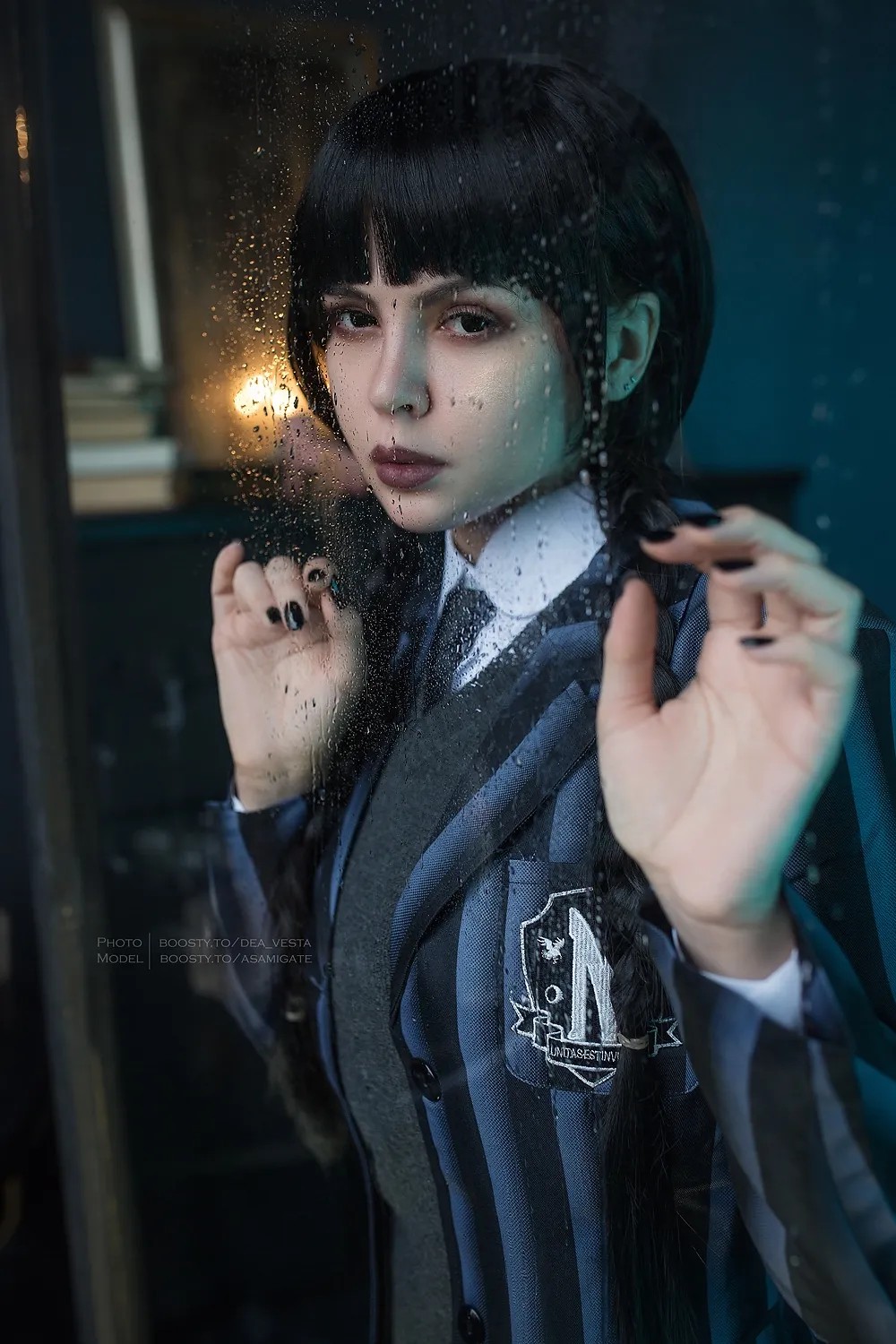 Модель Asami Gate представила косплей Уэнсдэй из сериала «Уэнсдэй». Снимки девушка разместила в социальных сетях.
