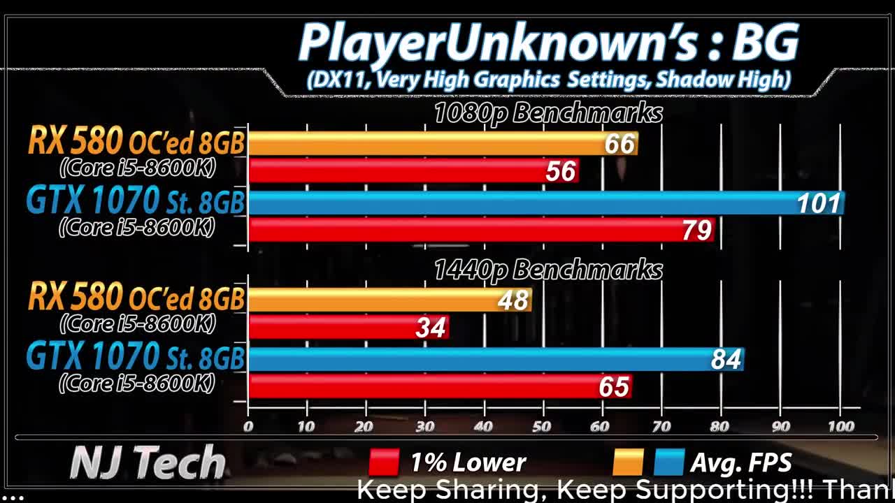 Сравнение RX 580 (8GB) OC VS. GTX 1070 (8GB) Stock