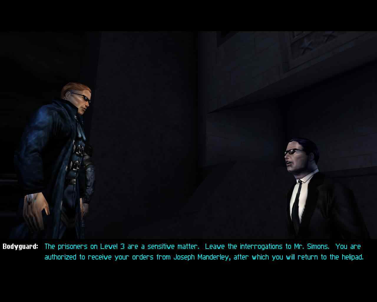 Арт Deus Ex хорош, чего не скажешь о графике. Даже в момент релиза низкополигональные модели выглядели плохо — закономерно, что они не прошли проверку временем. Их просто мало: большая часть NPC — это стандартные женские и мужские модели с разными скинами. Даже волосы реализованы обычной текстурой, из-за чего выглядят нарисованными. Хотя к этому легко привыкнуть, в кат-сценах лицо говорящего персонажа показывают крупным планом, как будто акцентируя недостатки графики.
