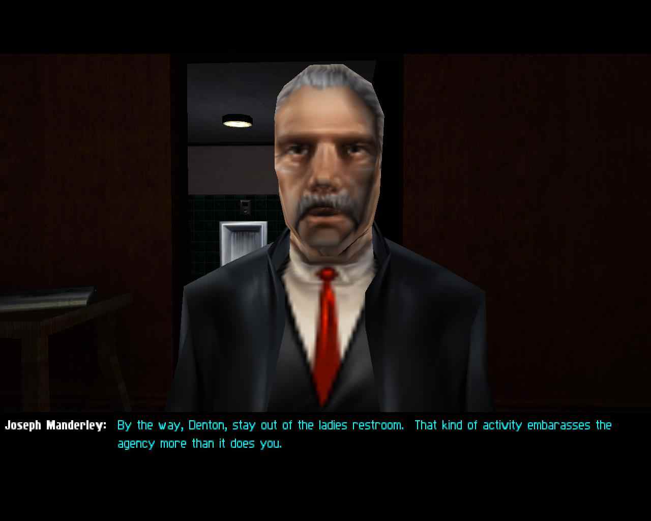 Более того, Deus Ex «осознаёт» всё разнообразие решений: одни персонажи предпочитают, чтобы герой разбирался с врагами без крови, другие считают насилие допустимым. Игра также следит за менее серьёзными событиями: некоторые NPC будут помнить даже то, что Дентон заглядывал в женский туалет.