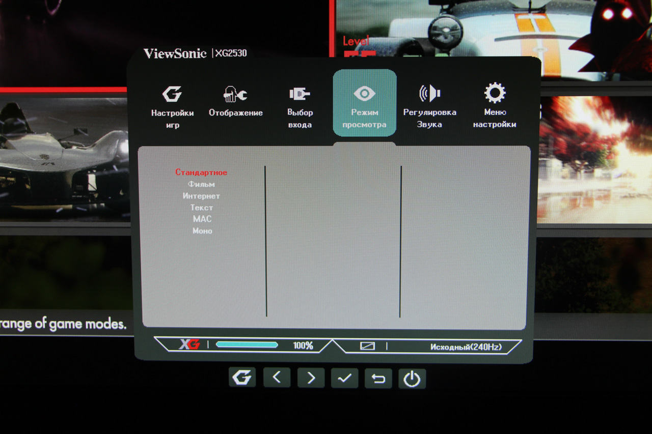 Модель XG2530 позиционируется компанией ViewSonic как инструмент киберспортсмена. И действительно: строгий дизайн, качественные компоненты, сборка и впечатляющие характеристики могут сделать геймера, выбравшего данный монитор, серьезной угрозой соперникам. Главным аргументом в пользу покупки данного дисплея является частота обновления экрана в 240Гц. Но для того, чтобы воспользоваться этим преимуществом потребуется соответствующая видеокарта.