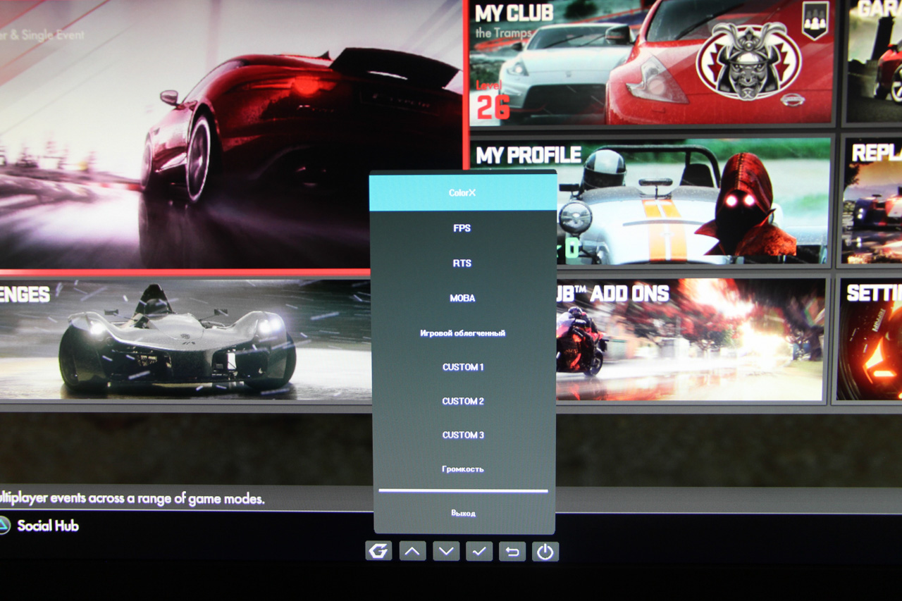 Внимательный читатель уже успел заметить, что данный экземпляр создан на базе TN матрицы. Заметил и, скорее всего, поморщился. Но не спешите с выводами. Да, черный не такой черный, как душа консольщика, но в целом монитор оставляет положительные эмоции. Цвета яркие, глубокие и насыщенные. Первой игрой, которую я запустил, была Driveclub. На XG2530 выглядит она еще лучше, чем я ее помню. Цвета умопомрачительные, картинка живая, контрастная и динамичная. Кажется, этому монитору особо удаются яркие, «кислотные» цвета, которыми богата Driveclub. Я играл на стандартном и консольном режимах при частоте обновления, установленной в соответствии с выводным сигналом PS4 в 60Гц. Далее, я попробовал Need for Speed (2015) и разочаровался в качестве картинки самой игры. Монитор еще больше подчеркнул графическую несостоятельность этой игры. Особенно удручающе выглядели модели машин. За такую «интимную близость» мне даже как-то неловко.