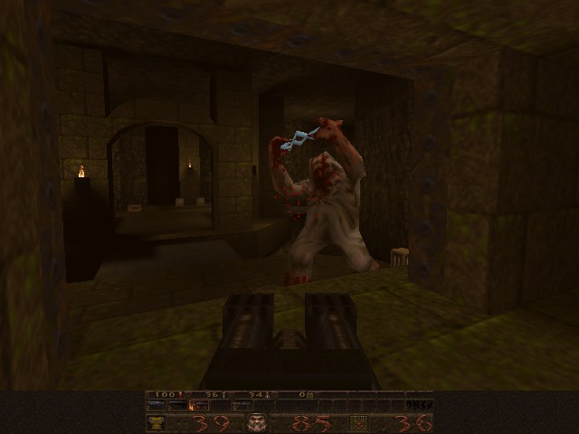 Отличный пример это Шамблер из Quake. Сначала он подготавливает атаку молнией, складывая руки над головой, заряжая молнию, которая ярко мигает. Он стреляет ею в игрока. Второе сообщение — атака ближнего боя. Как и раньше, он поднимает обе руки над головой, чтобы нанести удар, но теперь молнии нет, пространство между руками теперь больше, что говорит о том, что это будет атака ближнего боя, поскольку теперь он ближе подобрался к игроку. В сочетании со звуковыми сигналами, такими как его рев или звук электричества, это обеспечивает достаточно подсказок для игрока.