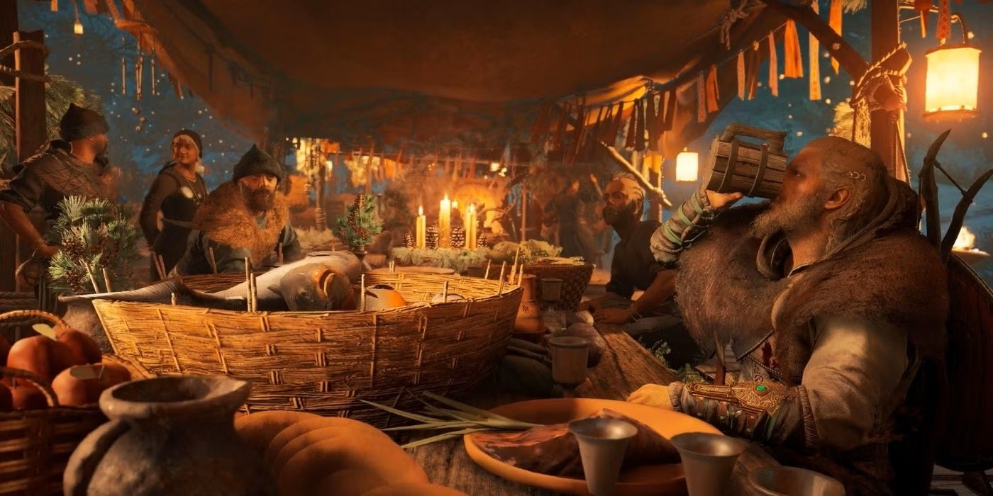 Важной частью праздничного настроения в Valhalla становится тема поселения. Развитие Рейвенсторпа — это история о создании дома на чужбине, заботе о своих людях и тихих вечерах в длинном доме у очага. Внутриигровой фестиваль Йоль, который разработчики ежегодно поддерживают тематическим контентом, привносит в игру задорную долю языческого празднества.
