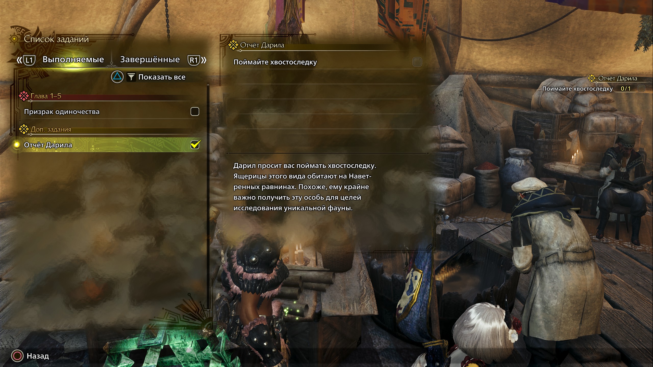 Диалог с ним откроет побочный квест «Отчет Дарила», в котором вам предстоит поймать ящерицу-хвостоследку.