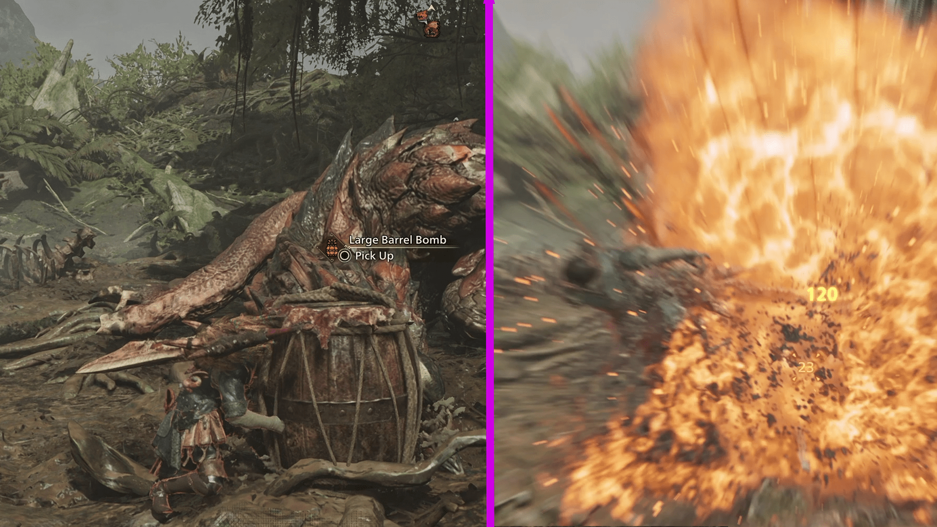 Вы также можете воспользоваться моментом его отдыха для установки смертельных ловушек. В вашем инвентаре есть бочки-бомбы, которые можно разместить вокруг спящего монстра для дополнительного урона. Если у вас есть ловушка, вы можете установить её под монстра, чтобы он оказался временно обездвижен при пробуждении.
