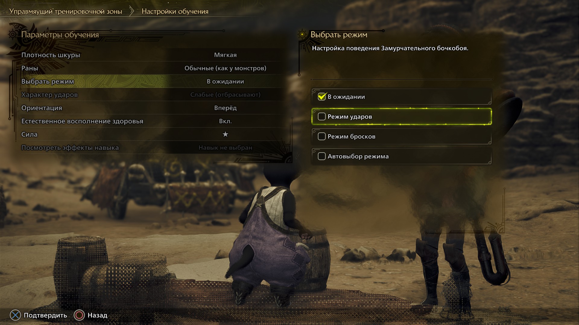 После того как вы настроите все кнопки и выберете оружие, переходите к основным тренировкам. Активировав режим «для ударов», вы запрограммируете манекен на регулярные атаки с временным интервалом, а также можете настроить использование дальнобойных атак. Не переживайте, если вас «нокаутируют» в тренировочной зоне — при падении здоровья до нуля оно восстанавливается.