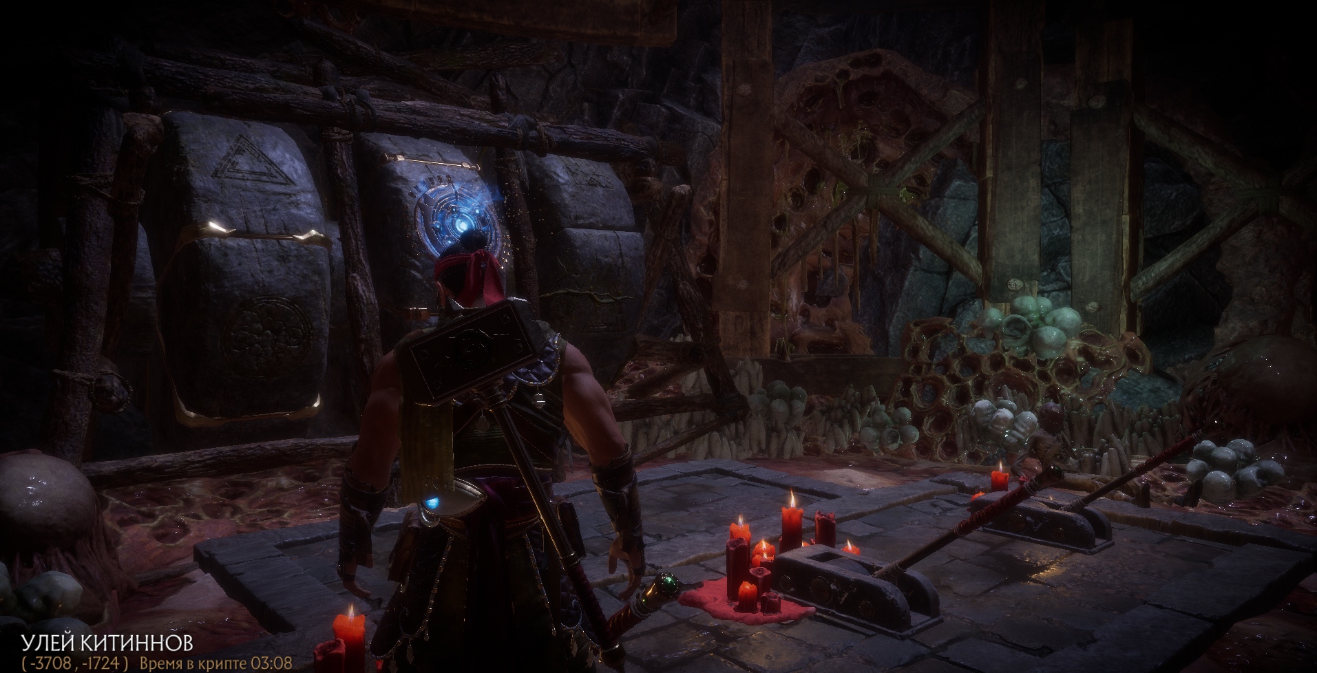 Потом пошёл гуглить как достать другой амулет, как оказалось его надо скрафтить в кузнице и материалы для крафта у меня уже были, скрафтил, вставил, вышел из игры!На след день захожу в крипту и камень в который я вставил АМУЛЕТ ШИНОКА перевернулся, а рычаг стал неактивным (как на скриншоте) и я такой ну ок (думал это нормально)!С третьим амулетом пришлось повозится, как оказалось надо сделать 50 фаталити на персонаже Цетрион