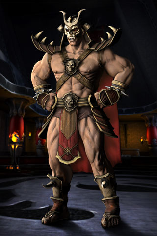 Shao Kahn (босс) - Шао Кан был приближённым императора Внешнего Мира Короля Драконов Онаги. Однако он не желал быть таковым, он желал гораздо большего — править Внешним Миром. И в один прекрасный момент он отравляет Онагу и ссылает его душу в огромное яйцо, поручив Блейзу охранять его. Шао Кан обретает великую мощь. Став новым императором Внешнего Мира, он захватывает множество других. В отличие от Онаги, Кан не мог сразу воссоединять завоёванный мир со своим. Старшие Боги придумали турнир Смертельная Битва, чтобы Миры могли защищаться от нападений императора. Однако Шао Кан был непобедим. Он и его воины побеждали в 9 турнирах подряд, что позволяли императору захватывать миры и присоединять их во Внешний Мир. Таким образом он накопил достаточно власти, чтобы на сей раз завоевать гораздо большее Царство — Эдению. Шао Кан побеждает в Смертельной Битве и начинает захват Эдении. Он убивает законного правителя короля Джеррода и силой заставляет королеву Синдел признать свою власть. Однако она не смирилась с этой ролью супруги нового императора и покончила с собой. Озлобленный Шао Кан не позволяет душе королевы обрести покой и не выпускает. Принцесса Китана, родная дочь Джеррода и Синдел была вырощена как хладнокровный убийца Шао Кана. Император пожелал оставить её как символ Царства Эдении. Затем он делает попытку завоевать Земной Мир. Рождённый на Земле демонический колдун императора Шанг Цунг с успехом выигрывает 9 турниров подряд, однако на 10 турнире он уступает монаху Великому Кунг Лао — лучшему воину Земного Мира. В гневе император ссылает его в кобальтовые копи шоканов. Великий Кунг Лао становится врагом Шао Кана. Однако несмотря на неудачные попытки императора и Шанг Цунга убить его, он остаётся живым до следующего турнира Смертельной Битвы. Шанг Цунг вызволяется из копий, направляется к Шао Кану и на сей раз приходит на турнир не один. В рудниках он познакомился с принцем Горо. Бой Горо и Великого Кунг Лао был очень долгим и жестоким, однако в конце концов Горо побеждает и убивает монаха. Шанг Цунг крадёт его душу. С этих пор воины Шао Кана становятся непобедимыми. И наконец пришло время последнего 10 турнира. Однако планам Шао Кана по захвату Земного Мира вновь суждено не сбыться. Лью Канг, потомок Великого Кунг Лао побеждает и Горо и постаревшего Шанг Цунга. Последнему удаётся убежать во Внешний Мир. Император снова был в ярости, однако Шанг Цунг молил его о пощаде и поведал ему свой новый план о уничтожении земных воинов. Он предлагал заманить их во Внешний Мир, чтобы сам император убил их. Шао Кан согласился с его планом и вернул ему молодость. Далее он приказывает Бараке напасть на академию Ву Ши. Барака и его Таркатаны нападают на академию и похищают Соню Блейд. Ловушка сработала, и все воины Земного Мира, включая заклятого врага Шао Кана — Рейдена, прибывают во Внешний Мир. Император осознаёт, что с Китаной что-то не так. Он приказывает Шанг Цунгу создать женщину — копию Китаны, чтобы в случае предательства своей падчерицы, заменить её на эту копию. Шанг Цунг создаёт Милину. Однако в ходе турнира во Внешнем Мире Китана окончательно вспоминает своё прошлое и в жестокой драке убивает Милину. Шао Кан не смог уничтожить земных воинов. Чемпион Смертельной Битвы Лью Канг и его товарищи побеждают, а сам Лью смог справиться и с Шанг Цун
