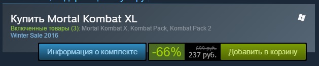 И теперь наконец я являюсь счастливым обладателем Лицензионной версии Mortal Kombat XL всего за 237 pублей.