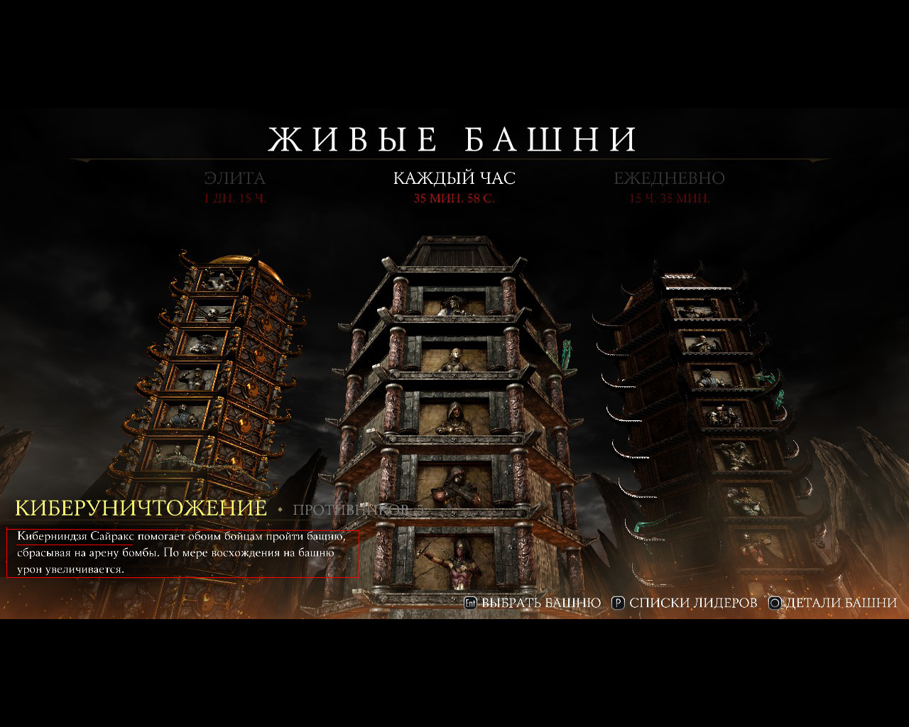 Есть предположение, что Эд Бун всё-таки добавит одного из киборгов в игру. И им будет Сайрекс. Вот такое сегодня было написано в описании одной из башен. Возможно он появится в Kombat Pack 2, который мистер Бун недавно тизерил.