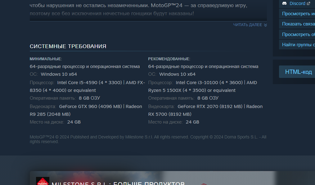 В новости скриншот из ЕГС, думаешь, он не актуальный? Системки в Стиме 1 в 1 как у MotoGP 24, скорей всего разработчики тупо скопипастили и ещё не поменяли.