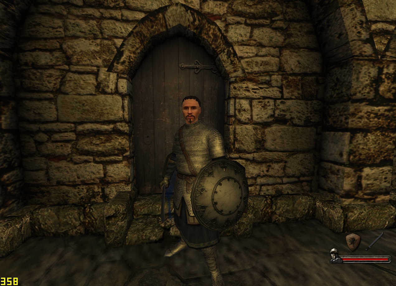 Оружие: длинный меч, тяжёлый двуручный меч, стальной щит.