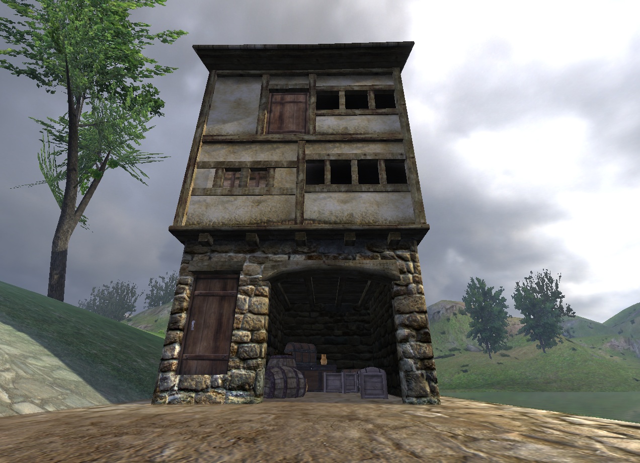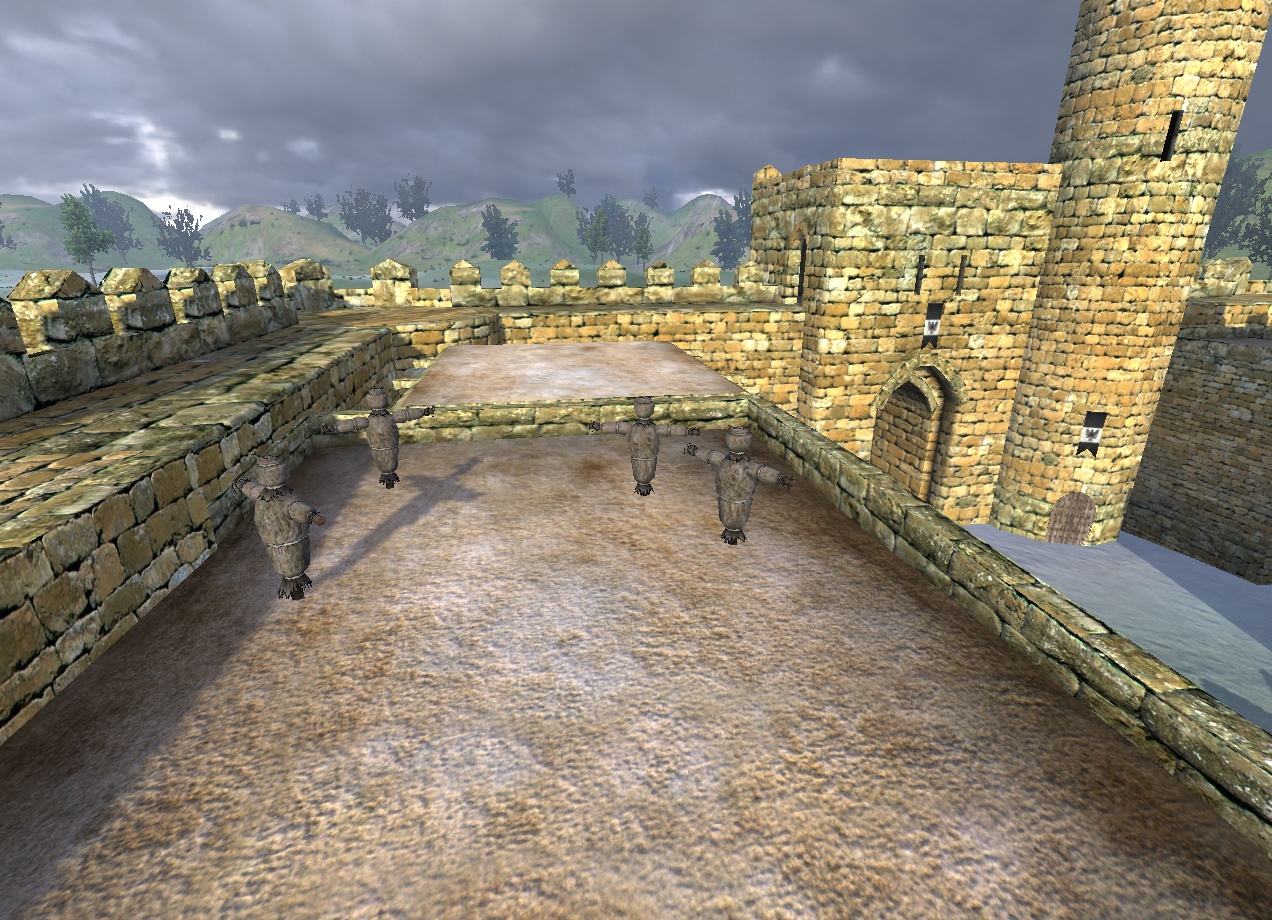 1) орудия на угловые башни; (12 бревен, канат, 2 слитка железа - 1 шт. ~ день работы)