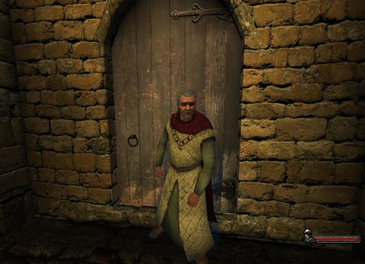 Послышался скрип, стук, увиделось движение и одна деревянная половина отошла в сторону. В проеме появилась чья-то короткостриженная голова с темными волосами. Маленькие глазки скользнули по двум мечам Виджина, укрепленным на поясе. Голова на мгновение скрылась в замке, а потом хриплый голос кого-то позвал: