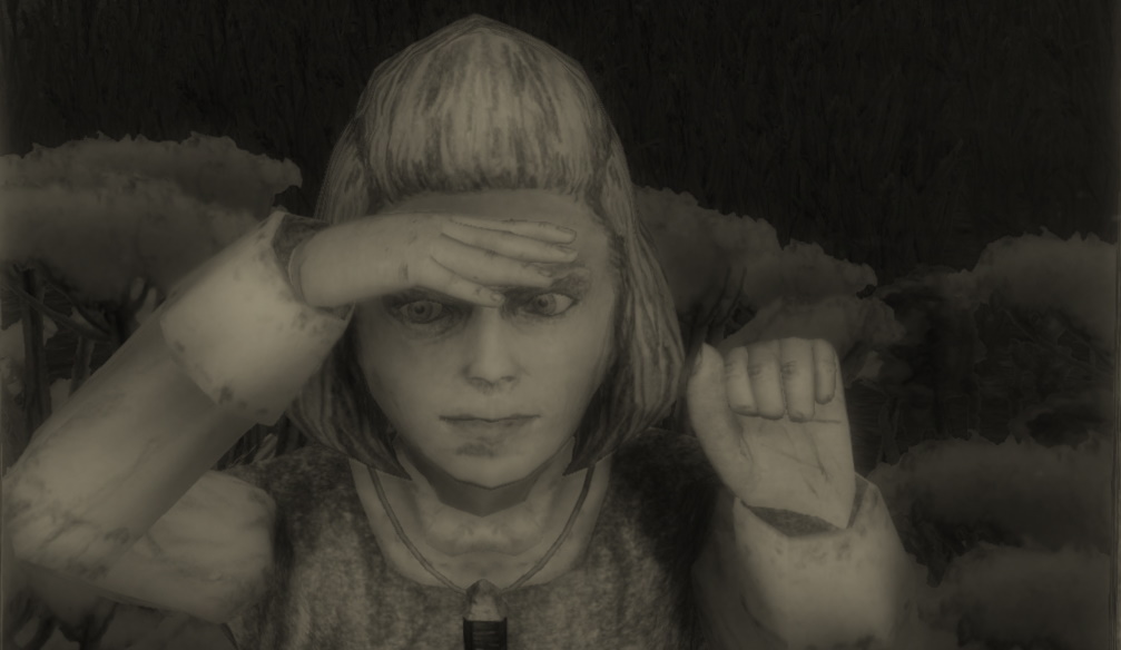 Все эти туманные серые оттенки выглядят необычно и интересно. Не знаю, усиливают ли они ужас, но настроение поднимают определенно. Чувствую, что пугающая фраза про бобы из фильма Маяк (хоррор 2019 года) в игру вписалась бы идеально.